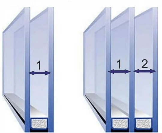 Основное отличие однокамерного стеклопакета от двухкамерного заключается в таких параметрах: