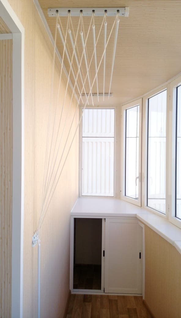 Выполненные работы: Демонтаж старых конструкций, Остекление балкона профилем Provedal C640, Отделка балкона и установка сушки для белья, Вывоз мусора